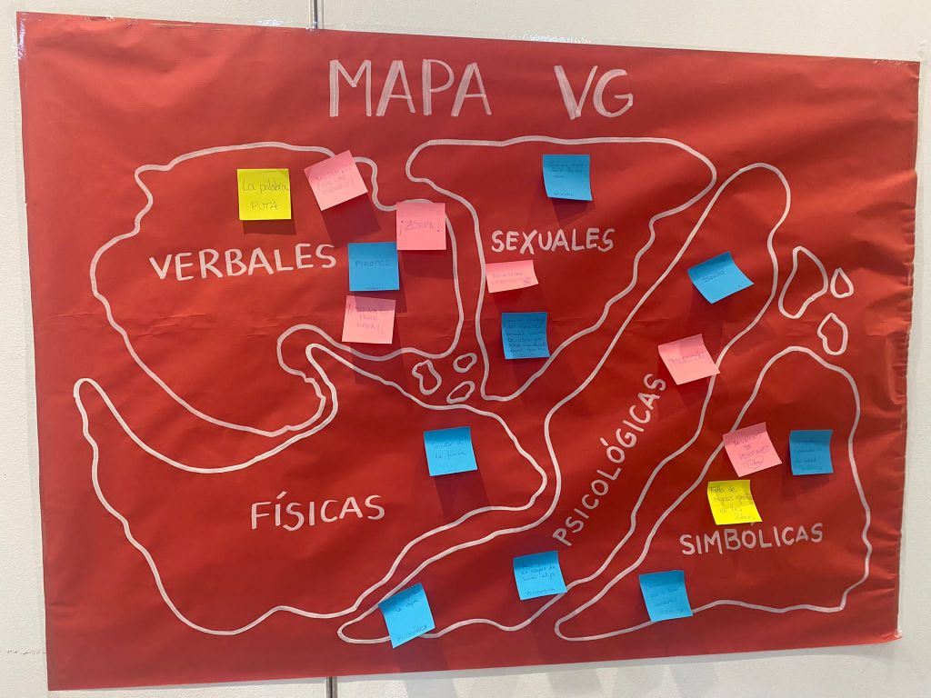 Entre las actividades destacadas, realizamos la dinámica «Rompiendo Estereotipos«, donde abordamos y desafiamos los estereotipos de género comunes en entornos educativos. Además, trabajamos en el «Mapa de la Violencia de Género en las Aulas«, una actividad que nos permitió identificar y clasificar las diversas formas de violencia de género en el contexto escolar. La idea de estas actividades es fomentar una comprensión profunda y práctica de los temas tratados. No con los asistentes, sino como proyección hacia nuestras aulas.